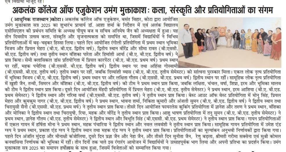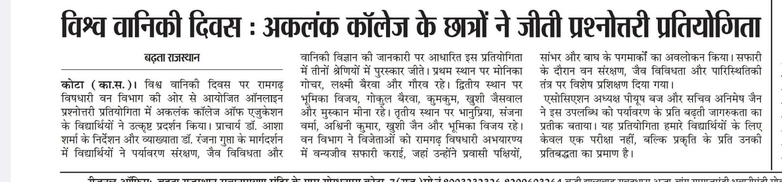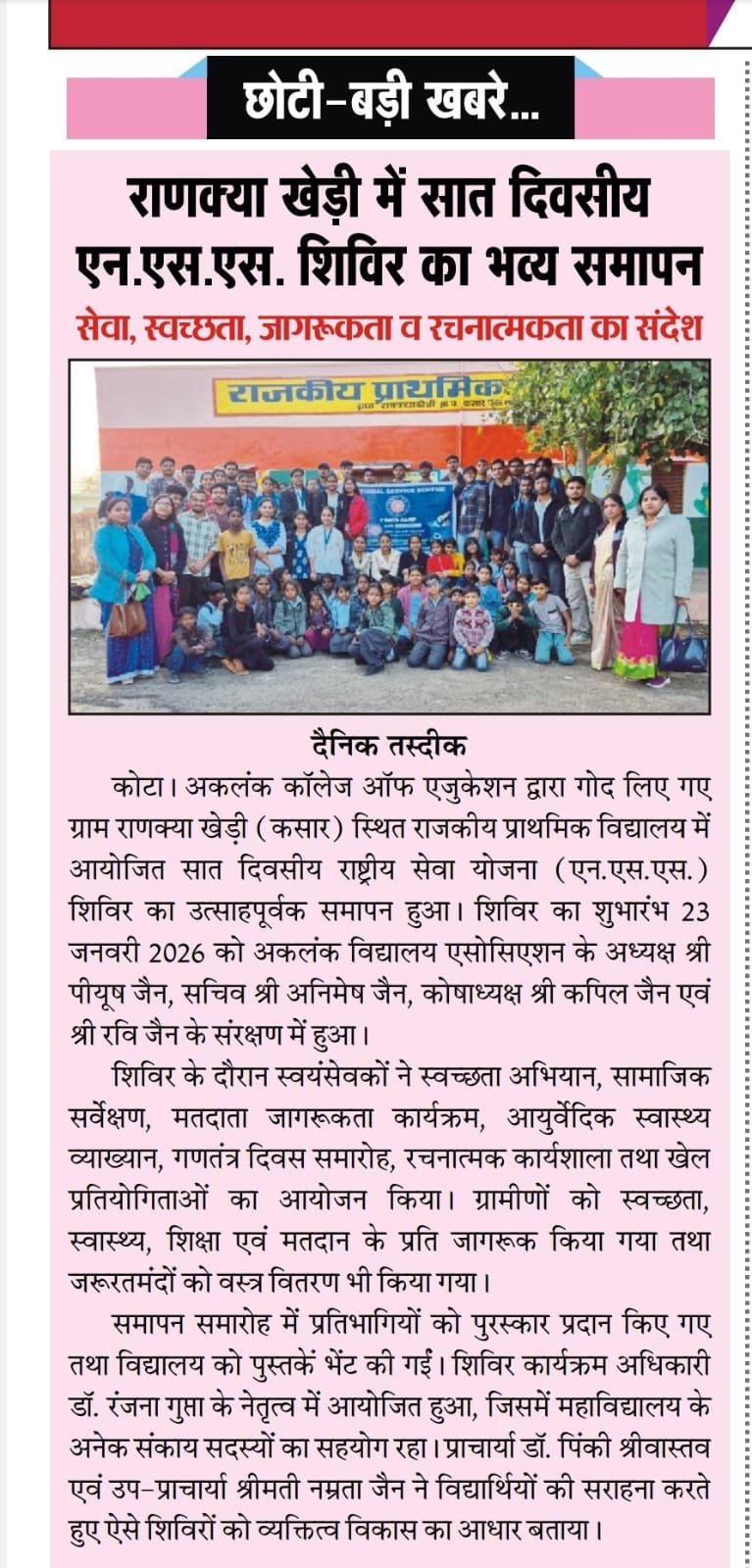 NSS News Umang World Soil Day IQAC CELL ABHEDA BIOLOGICAL PARK BAL DIWAS IASC Geeta Gyan Open Exam Ekta Diwas Mansit Swasthya Ramgarh Vishdhari Tiger Reserve NSS Sthapana Diwas Saras Dairy Milk Factory N.S.S. Orientation Nasha Mukti Teachers Day NATIONAL SPORTS DAY Sach Media Tasdik आधुनिक राजस्थान Hukmnama Kalam ka adhikar Denik Buero Headline News World Forestry Day Open Air Session Divya Aadhar Aadhunik Rajkasthan Dainik Angad Paintra News Desh ki Dharti Speak macay Janbaz Desh Ki Dharti Dainik Tasdik Apka Shakshi Dainik Beuro HS AJMER Jannayak Kota Badhata Rajasthan Pentra Pathology Lab Visit Janbaz Desh Ki Dharti Dainik Beuro Hukmnama Samachar Jannayak kalam ka adhikar SACH MEDIA Aadhunik Rajasthan UOK Umang 2025 Aadhunik Rajasthan News Paintra News Kalam Ka Adhikar Jabaz News Rajasthan Darshan Desh Ki Dharti Badhta Rajasthan Story Writing Aadhunik Rajasthan News Paintra News Kalam Ka Adhikar Jabaz News Jannayak News Headline News